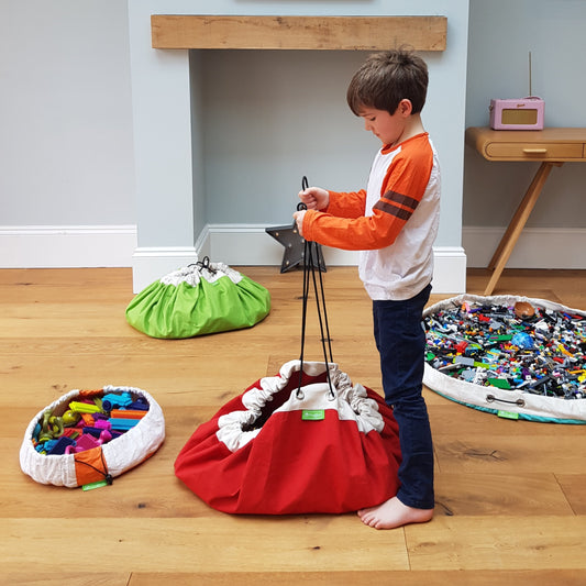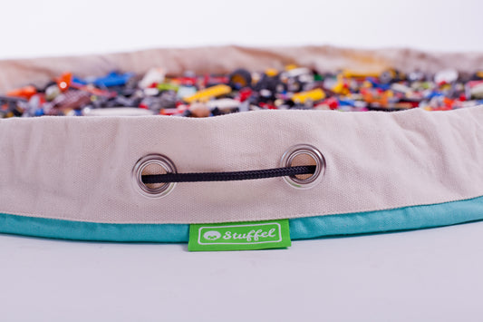No more tipped out boxes! The original Stuffel Large is the perfect Lego Bag! It's 100cm wide with a high rim to keep pieces contained. The Large Stuffel hold around 6kg of Lego - When it’s time to tidy, the drawstring scoops it all back up again.